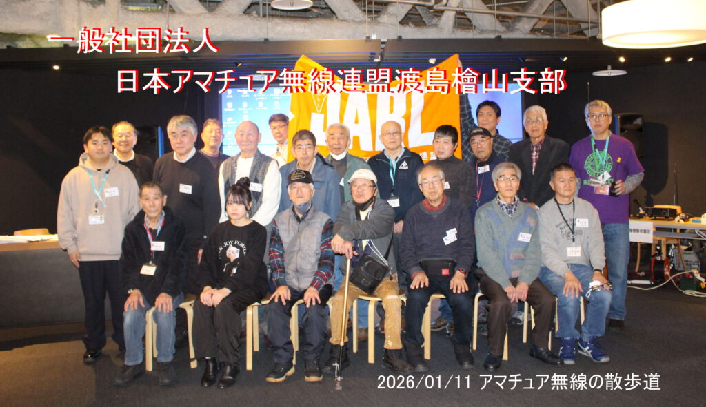 1/25 緊急役員会(全体会)開催のお知らせ1/23 北海道新幹線開業10周年特別局運用予定1/17 北海道新幹線開業10周年特別局に係る寄付のお願いについて1/17 北海道新幹線開業10周年記念アワードについて1/17 令和7年度新年会について1/17 北海道新幹線開業10周年特別局8J8H5K開局式の様子について1/17 第4回支部役員会の様子をアップしました。1/11 蔦屋イベントアマチュア無線の散歩道の様子をアップしました。1/3 1月のロールコールの様子をアップしました。1/1 ZOOMを使ったモールス講習会実施中(毎日の記録)1/1 年越しロールコールの様子をアップしました。